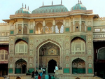 Situated just over 10kms away from Jaipur on the Jaipur-Delhi highway is Amber which was the ancient capital of Jaipur State. A bus leaves from Hawa Mahal every 30minutes and a well laid out road takes the visitor out of the city and very soon one witnesees lush-green hills. One then notices a alke and standing next to it is the majestic Amber Fort which several rulers of the erstwhile state of the Jaipur recognized as a vantage military building. The excursion starts with the Dil-E-Aaram garden which is laid out in the traditional Mughal style. The complex of Palaces, halls, pavilions, gardens and temples was built by Raja Man Singh, the Rajput commander of Akbar’s army, Mirza Raja Jai Singh and Sawai Jai Singh over a period of about 2centuries. The Diwan-e Aam (hall of public audience) has latticed galaries and double row of columns each having a capital in the shape of elephants on the top. The temple offers a wonderful sight and has huge doors made of silver. The Jai Mandir (hall of victory) has a glittering ceiling of mirrors and elegant inlaid panels. The Zenana or women’s apartments were designed in a manner which could easily fascilitate the entry of the Maharaja to various chambers without any of the concubines aware of any visitor.